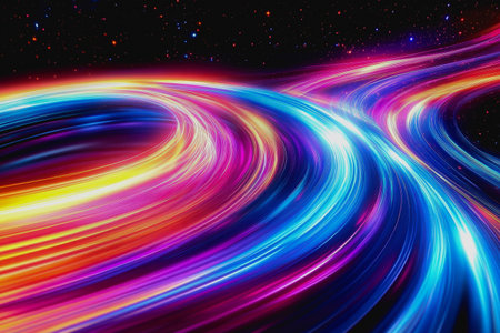 Vibrant abstract light trails create a dynamic feeling of motion in a colorful background