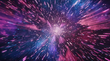 Abstract exploding light particles creating a vibrant tunnel through deep space and stardust