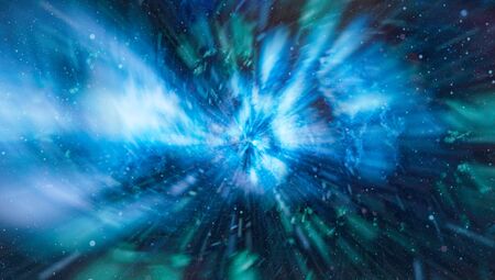 Space Travelling in the Speed of Light. Abstract of warp or hyperspace motion in blue star trail.