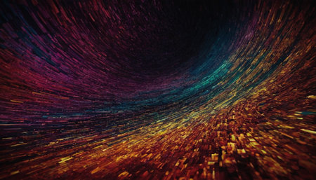 This stunning abstract image features vibrant colors in a dynamic swirl, creating a sense of motion and energy in a captivating digital universe scene.