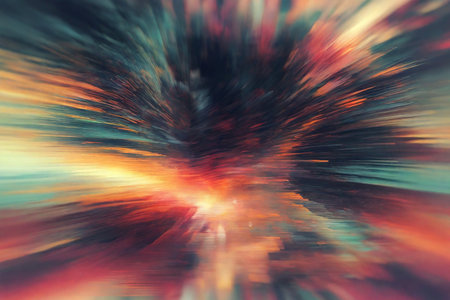 This captivating abstract image showcases a vibrant burst of light and color, resembling a cosmic explosion. It features dynamic rays extending into a dark backdrop, evoking motion and energy.