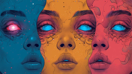 Vibrant colors and intense expression evoke emotion in a captivating artistic portrayal