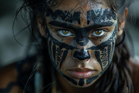 A group of people with painted faces and dreadlocks, maori haka is a traditional war dance