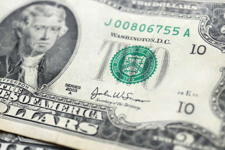 Close up, American one hundred dollar banknote on white background. Selective focus.