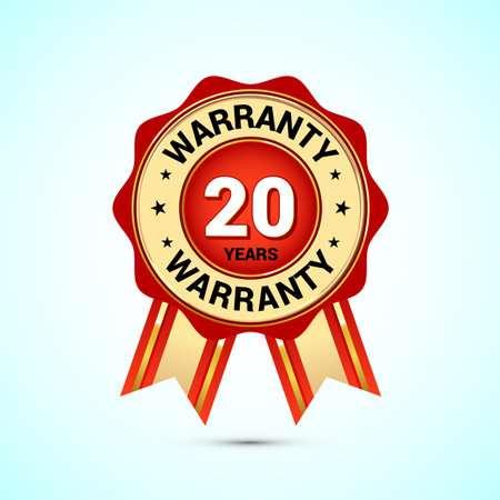 Advertising 20 years warranty gold and red color emblem, for label, icon, logo, badge, symbol, button