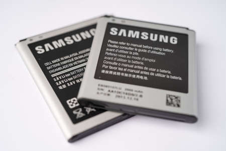 BANGKOK,THAILAND.JUNE 5,2019: Close up battery for Smartphone SAMSUNG.