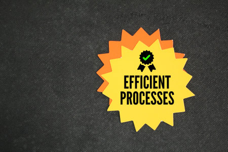 yellow star paper with the word efficient processes and an icon of appreciation or certified.