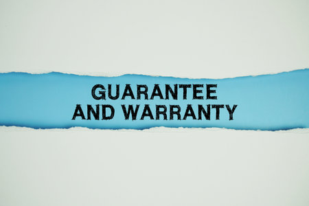 Guarantee And Warranty text on blue with white paper torn ripped of horizontal