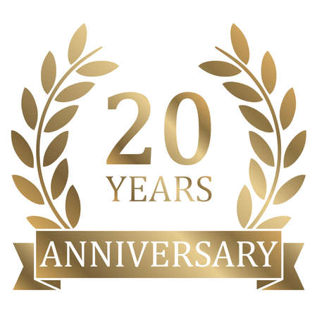 eps vector file with golden laurel wreath on white background for success or firm jubilee with text 20 years
