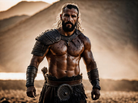 photo of ancient barbarian male warrior stained , generative AI