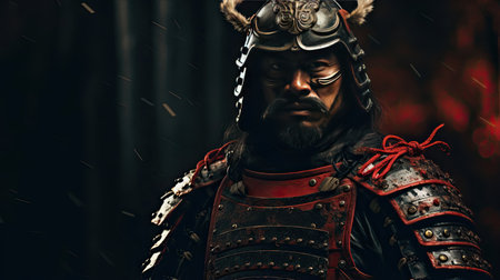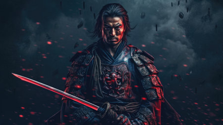 Male asian warrior portrait. Samurai in traditional armor with katana. Created with Generative AI