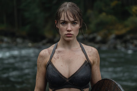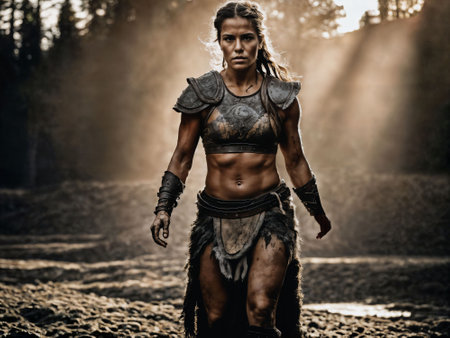 photo of ancient barbarian female warrior stained , generative AI