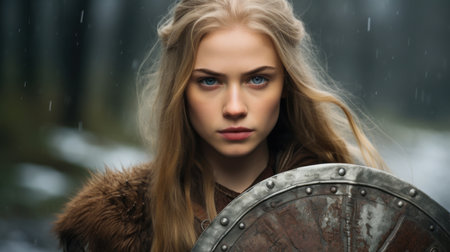 Portrait of a Slavic woman warrior in chain mail: depicting a strong and warlike figure reflecting the spirit and heritage of Slavic culture in its struggle and defense