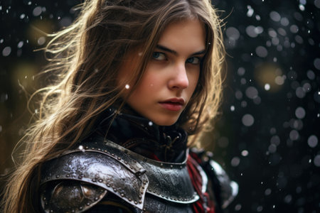 Young female warrior in medieval armor