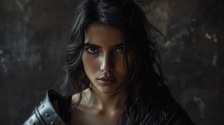 Fierce and Mysterious Woman in Leather Outfit