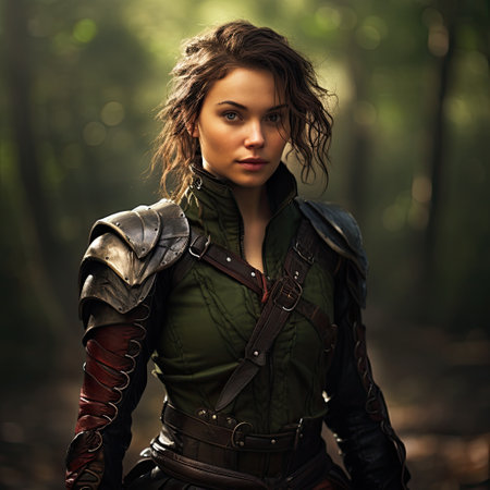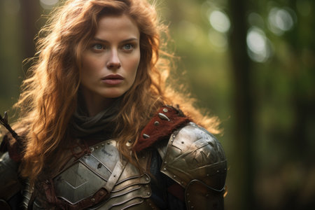 Portrait of a medieval warrior in armor in the woods. Fantasy,Generative AI