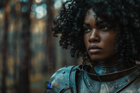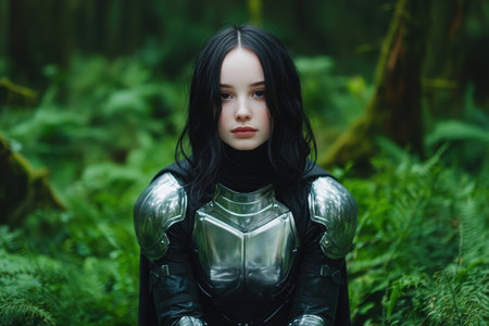 Knight Standing Confidently in Armor Amidst a Vibrant Forest During Daylight.