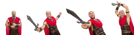 Photorealistic representation of Roman soldiers equipped with armor. Biblical figure. Historical figure.