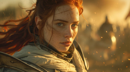 Determined Female Warrior in Armor