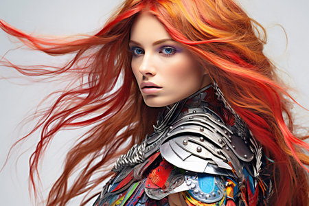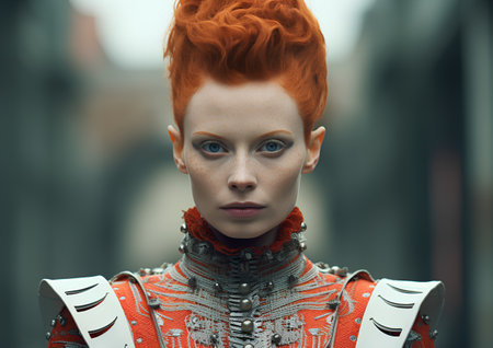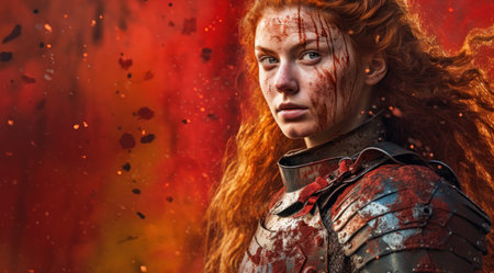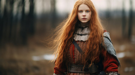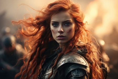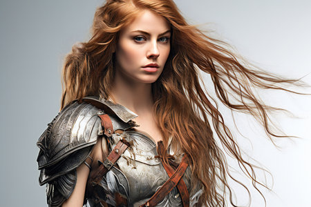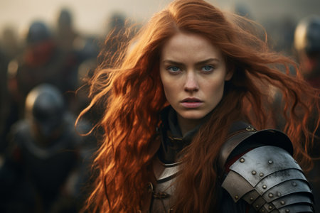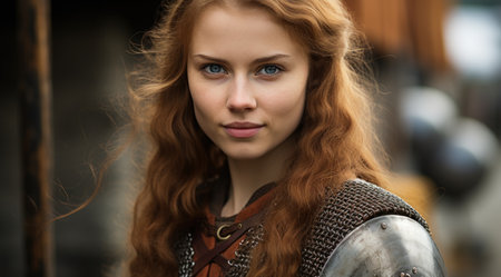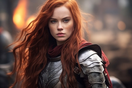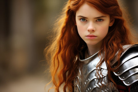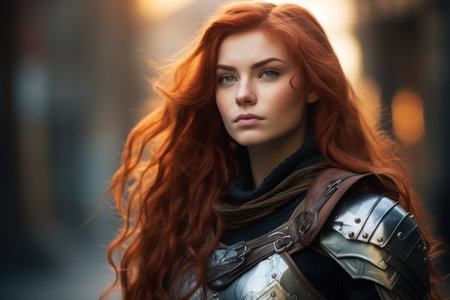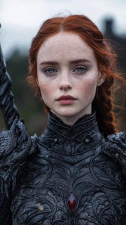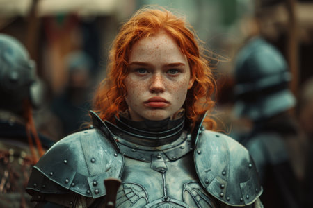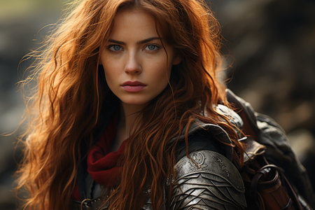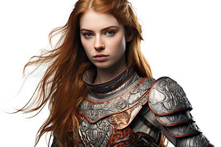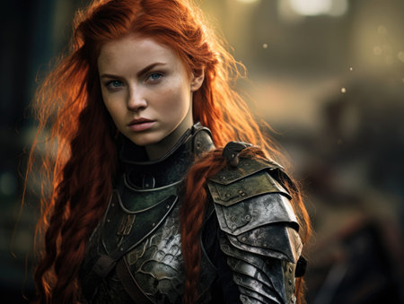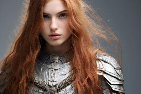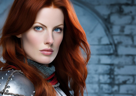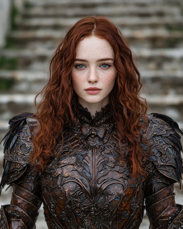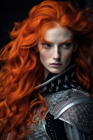Portrait of a redhead woman in medieval armor