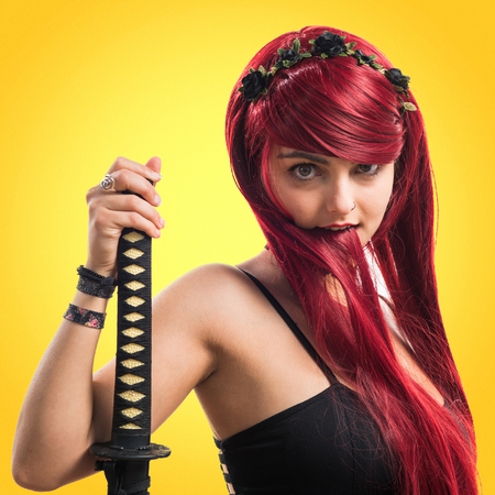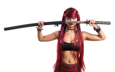 Young redhead girl with katana