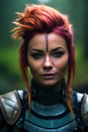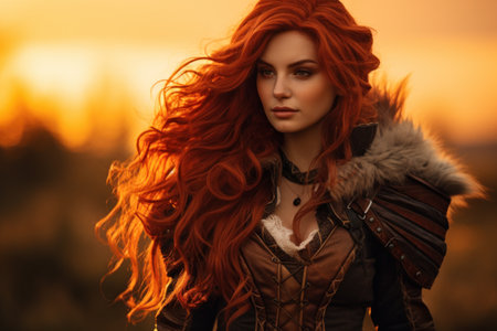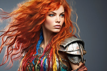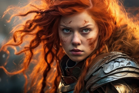 Warrior woman with red hair. Portrait of a fantasy warrior.