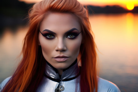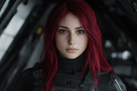 Intense gaze of a woman with vibrant red hair