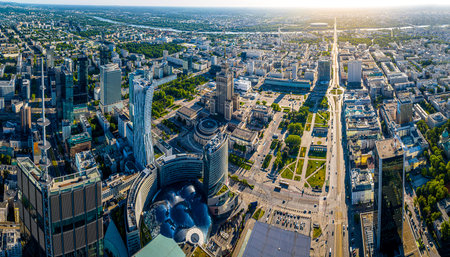 Aerial view of Warsaw cityscape at sunny day