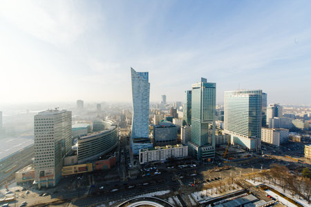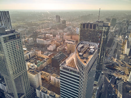 Aerial view of Warsaw skyscrappers in the business center of the city, Poland