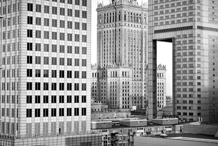 View of the city center with skyscrapers and Palace of Culture and Science.