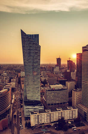 Aerial view of Warsaw city at sunset - Warsaw, Poland