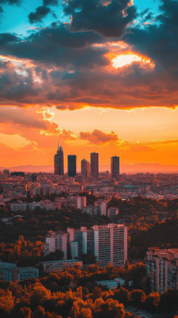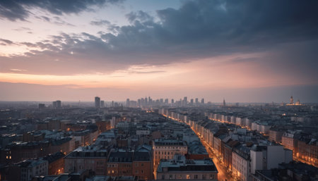 The citys silhouette stands out against a twilight sky, as the days last light fades over the urban horizon.. AI Generation