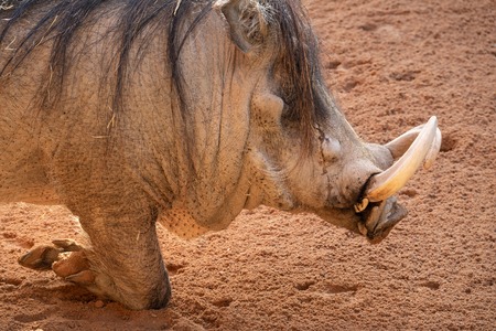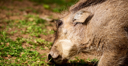 Closeup of warthog profile on its knees