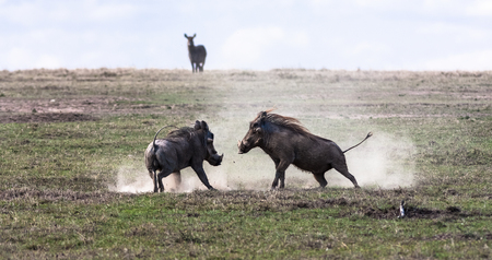 Warthogs. The battle in the field. SweetWaters, Kenya