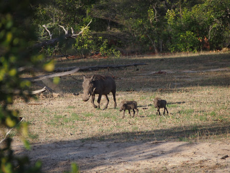 A Wild warthog with its' young in Fathala, Senegal