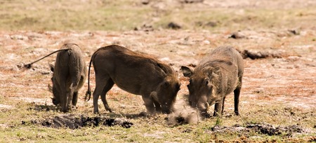 warthogs in Chobe Game Reserve digging for food