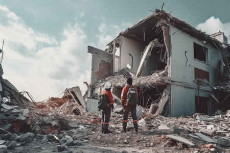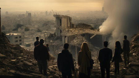 survivor people at apocalypse world with abandon damaged building, generative AI