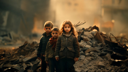 Children in the ruins of a destroyed building. Children in the ruins of a destroyed building.