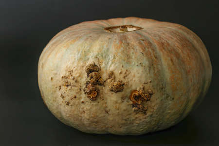 Trendy Ugly Pumpkin on a dark background, minimal concept ugly vegetables, Horizontal orientation, Closeup