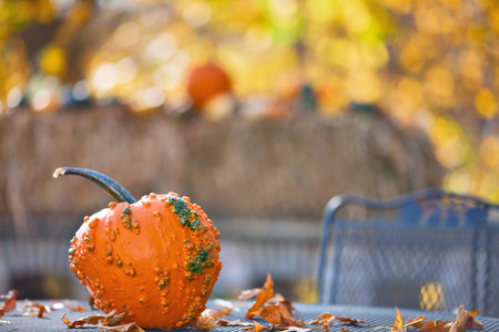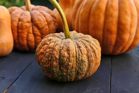 Warty Goblin - Hybrid Pumpkin on a wooden table in nature