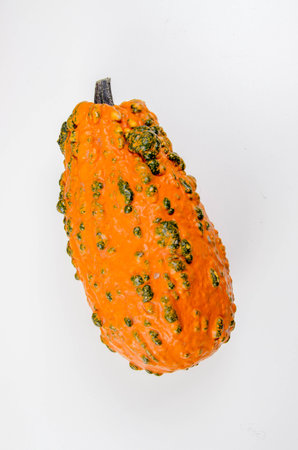 Ugly one organic pumpkin on white background. The concept of natural vegetables.