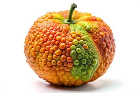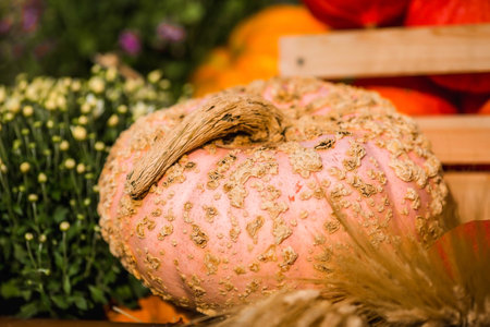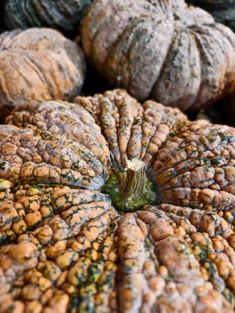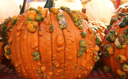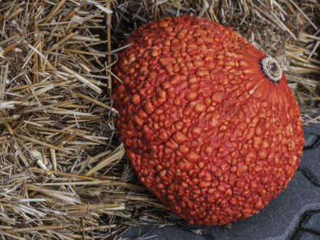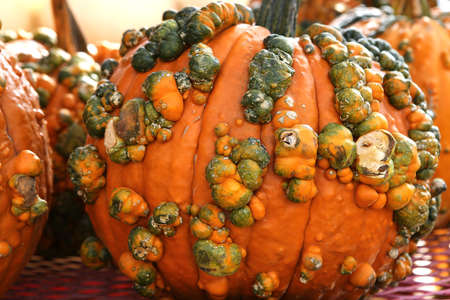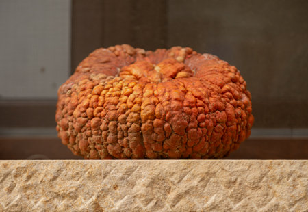 close-up of a decorative pumpkin, withered berry skin, pronounced relief, pumpkin