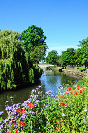 Watercolor painting on canvas. Stratford-upon-Avon Warwickshire. Beautiful landscape on the River Avon.