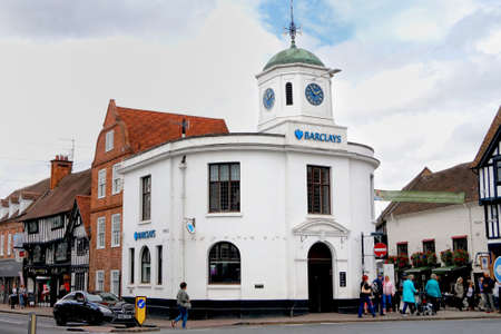 Stratford-upon-Avon, UK - July 21 2017: Old Barclays Bank, a Grade II listed building at Market Cross roundabout