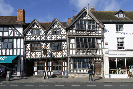 STRATFORD UPON AVON, UNITED KINGDOM, APRIL 8, 2017: People are strolling alongside traditional wooden houses in Stratford upon Avon, England