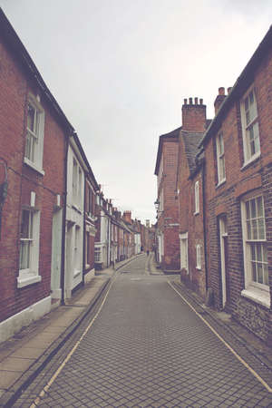 Narrow street architecture with typical english brick buildings and architecture in Winchester, England.