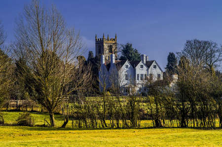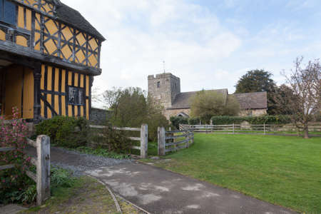 Parish church by gatehouse to Stokesay castle in Shropshire