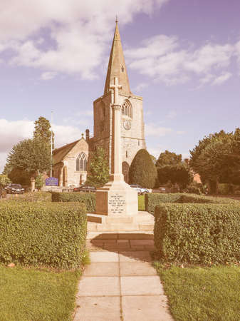 TANWORTH IN ARDEN, UK - SEPTEMBER 25, 2015: The Village Green with St Mary Magdalene church and war memorial vintage
