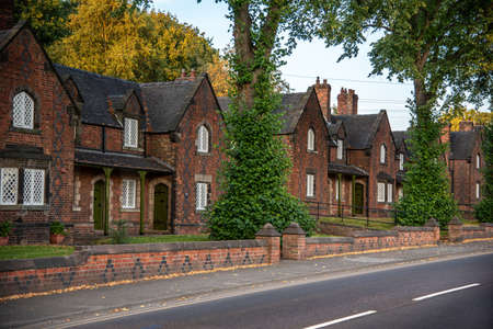Old, vintage block of red brick houses in town of Sandbach, Stafordshire, UK.