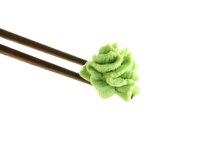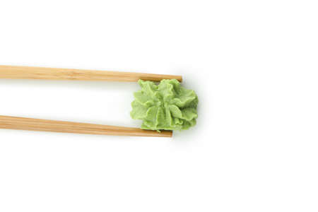 Chopsticks with wasabi isolated on white background